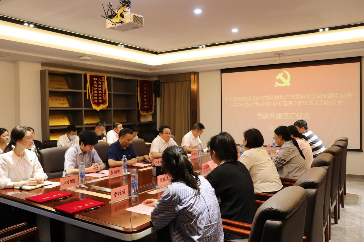 为起劲探索立异党建事情新模式,,,,,探索团结党建新路径,,,,,起劲形成组织共建、资源共享、生长共商的党建事情新时势,,,,,6月9日,,,,,南昌市建设投资集团房地产开发有限公司党支部与南昌市西湖区桃花街道凉伞树社区党支部举行了党建共建签约仪式。 。。。。 。 。。公司党支部委员、总司理万勇林,,,,,党支部委员、副总司理何强科,,,,,总司理助理吴瑞雪、手艺照料陈保福出席,,,,,双方单位共16名党员加入。 。。。。 。 。。